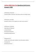 This document provides an extensive collection of Indiana QMA State Test questions with correct answers, covering all major medication classes tested on the exam, including respiratory, gastrointestinal, cardiovascular, endocrine, neurological, psychiatric, and dermatologic drugs. It details each category’s action, uses, side effects, nursing considerations, and commonly tested medications.