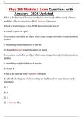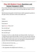 This document is an updated PHYS 165 Module 3 exam study guide containing clearly organized exam questions with correct answers covering core classical mechanics topics. It focuses on forces and motion, free-body diagrams, Newton’s laws, friction, inertia, acceleration, circular motion, gravitation, and fundamental forces of nature, with worked calculations and conceptual explanations. The material is designed to support focused review and reinforce problem-solving skills commonly tested in PH...