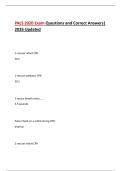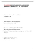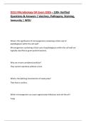This document is an updated D311 Microbiology OA exam study guide containing 100+ verified questions with correct answers covering core microbiology concepts tested at WGU. It includes topics such as bacterial structure and staining, viruses, fungi, protozoa, microbial growth, transmission methods, infection control, immunity, vaccines, antimicrobial drugs, resistance, epidemiology, and public health principles. The content is presented in a clear question-and-answer format to support focused re...