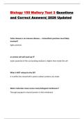 This document is an updated Biology 150 Mallery Test 3 exam study guide containing exam questions with correct, verified answers covering core cell biology, metabolism, and energy concepts. It includes key topics such as membrane structure and transport, enzymes and thermodynamics, cellular respiration and photosynthesis, signal transduction, organelle function, cytoskeleton dynamics, and biochemical pathways like glycolysis, the citric acid cycle, and the electron transport chain. The content i...