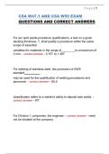 This document is the updated CSA W47.1 and CSA W59 exam study guide containing exam questions with correct, verified answers aligned with current Canadian Welding Bureau (CWB) requirements and CSA welding standards. It covers essential topics such as welder and welding supervisor qualifications, procedure qualification records, prequalified joints, welding positions and classifications, inspection and testing methods (VT, RT, UT), allowable discontinuities, preheat and interpass temperatures, fi...