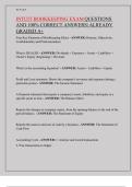 This document is the updated Intuit Bookkeeping Certification exam study guide containing actual exam questions with correct, verified answers aligned with Intuit Academy bookkeeping standards. It covers all core bookkeeping concepts tested on the exam, including accounting principles, the accounting equation, financial statements, the accounting cycle, cash and accrual accounting, assets and liabilities, inventory methods, depreciation, payroll processing, loans, reconciliation methods, and key...