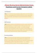 This document is the latest updated Illinois Nursing Home Administrator exam study guide containing actual exam questions with correct answers and clear definitions aligned with current Illinois licensure requirements. It focuses heavily on administrative law, healthcare management, legal terminology, ethics, risk management, human resources, and regulatory compliance relevant to long-term care facility administration in Illinois.