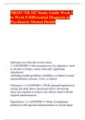 NR547/ NR 547 Study Guide Week 5 to Week 8 Differential Diagnosis in Psychiatric-Mental Health