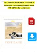 TEST BANK For Bontrager's Textbook of Radiographic Positioning and Related Anatomy 10th Edition by John Lampignano | Verified Chapter's 1 - 20 | Complete