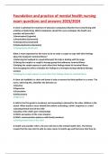Foundation and practice of mental health nursing exam answered questions latest 2023