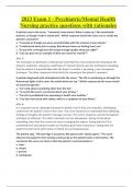 2023 Exam 1 - Psychiatric-Mental Health Nursing practice questions with rational...