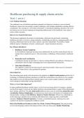This summary provides an insight in all the articles that need to be studies for Healthcare purchasing & supply chains. Note: This summary is made with help of AI.