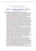 Ik heb door deze samenvatting mijn examen in één keer gehaald. Dit is een samenvatting over de literatuur die ik in de vijf weken dat ik deze onderwerpen heb gevolgd heb gehad. De samenvatting, vat verschillende auteurs samen binnen één onderwerp. En de onderwerpen die worden behandeld zijn personal and social identity, attitude and hospitabileness, social capital, social spaces, en social development.