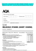 AQA GCSE - RELIGIOUS STUDIES (SHORT COURSE) - Section 5 Themes - May 2025 - Question Paper and Marking Scheme Merged