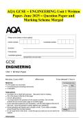 AQA GCSE – ENGINEERING-Unit 1 Written Paper- June 2025 - Question Paper and Marking Scheme Merged