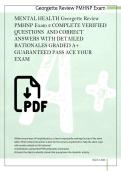 - 2026 MENTAL HEALTH Georgette Review PMHNP Exam COMPLETE VERIFIED QUESTIONS AND CORRECT ANSWERS WITH DETAILED RATIONALES GRADED A+ GUARANTEED PASS ACE YOUR EXAM • Exam (elaborations)