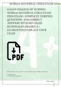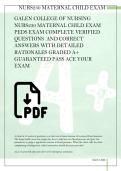 GALEN COLLEGE OF NURSING NURS230 MATERNAL CHILD EXAM PEDS EXAM 1 COMPLETE VERIFIED QUESTIONS AND CORRECT ANSWERS WITH DETAILED RATIONALES GRADED A+ GUARANTEED PASS ACE YOUR EXAM