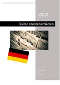 20 Duitse krantenartikelen uitgewerkt. Moeilijke woorden eruit gehaald en vertaal, samenvatting gemaakt en mijn mening er over gegeven.