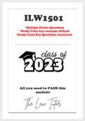 ILW1501 (Introduction To Law) The only Study Pack you will need! *Multiple Choice Questions *Study Units key concepts defined *Study Units Key Questions Answered. This pack covers the entire module and the most important key concepts, Questions on each study unit and will help you to understand this module, as well as help with your assignments and exams!