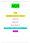 AQA GCSE COMBINED SCIENCE: TRILOGY 8464/P/1H Higher Tier Physics Paper 1H Question Paper + Mark scheme [MERGED] June 2023