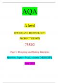 AQA A-level DESIGN AND TECHNOLOGY: PRODUCT DESIGN 7552/2 Paper 2 Designing and Making Principles Question Paper + Mark scheme [MERGED] June 2023