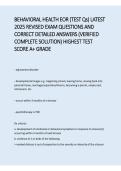 Behavioral Health EOR Exam | Latest 2025 Revised Questions & Correct Answers Verified