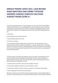 Prepare with the Barkley PMHNP – Latest 2025–2026 Revised Exam Questions and Correct Detailed Answers, authored by Barkley & Associates, Inc. This comprehensive resource includes verified questions with in-depth rationales covering psychiatric assessment, DSM-5-TR diagnoses, psychopharmacology, psychotherapy modalities, ethics, and clinical decision-making, helping PMHNP students and candidates confidently master content and succeed on certification exams.