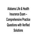 Prepare thoroughly for the Alabama Life and Health Insurance Exam with this comprehensive Questions and Answers Study Guide, updated for 2026–2027. Includes verified practice questions, detailed explanations, and essential concepts covering life and health insurance policies, underwriting, ethics, and Alabama state regulations. Designed to help candidates strengthen knowledge, boost confidence, and successfully pass the Alabama Life and Health Insurance Exam using the latest 2026–2027 update...