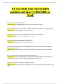 The Kentucky Real Estate Final Exam Practice – 2025/2026 Edition study guides are available as verified, A+ graded resources. They provide actual exam-style practice questions with correct answers and detailed rationales, already graded A+, covering both the national portion (80 questions) and the Kentucky state-specific portion (50 questions) of the licensing exam.