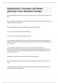 Respiratory Concept Lab Notes (Directly From Shadow Health) Exam Questions And Answers 2024-2025