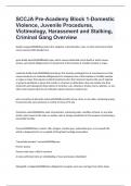 SCCJA Pre-Academy Block 1-Domestic Violence, Juvenile Procedures, Victimology, Harassment and Stalking, Criminal Gang Overview Exam Study Questions With Solutions