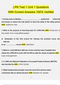 LPN Test 1 Unit 1 Questions With Correct Answers 100% Verified(2023/2024)