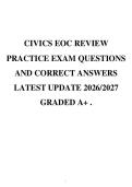 5. The owner... i x Examen • 23 páginas • por lectdenis • subido 2026 Vista rápida i x Chamberlain College Of Nursing • CALIFORNIA CNA CIVICS EOC REVIEW PRACTICE EXAM QUESTIONS AND CORRECT ANSWERS LATEST UPDATE 2026/2027 GRADED A+ . (0) $14.99 0x vendido 1. The Enlightenment idea of the separation of powers was developed by ☑correct answer Baron de Montesquieu