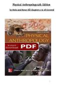 This Test Bank for Physical Anthropology, 12th Edition by Stein & Rowe provides comprehensive coverage of Chapters 1–18, aligned precisely with the latest textbook edition. Designed for anthropology and biology students, this resource includes exam-style multiple-choice questions, concept-based assessments, and instructor-verified answers to support quizzes, midterms, and final exams. Ideal for exam preparation, homework support, and deep concept review. Fully searchable, clearly structured, a...