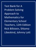 Test Bank for A Problem Solving Approach to Mathematics for Elementary School Teachers, 12th Edition Rick Billstein, ShlomoTest Bank for A Problem Solving Approach to Mathematics for Elementary School Teachers, 12th Edition Rick Billstein, Shl