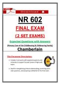NR 602 final exam 2026, NR 602 primary care of the childbearing and childrearing family, Chamberlain NR 602, NR 602 women's he... i x Exam (elaborations) • 77 pages • by LectJared • uploaded 2026 Quick View i x Chamberlain College Of Nursing • NR 602 NR 601 Final Exam 3 (2026) | Chamberlain Primary Care Maturing & Aged Family Actual Questions and Answers (PDF) (0) $18.49 0x sold INSTANT PDF DOWNLOAD. Ace your Chamberlain NR 601 Final Exam with this comprehensive 2026 resource featuring 3 full set exams. Includes expected questions with answers and rationales for Primary Care of the Maturing and Aged Family. Ideal for strengthening clinical understanding, practicing exam-style questions, and preparing confidently for finals.