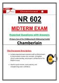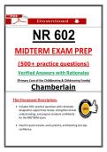 NR 602 midterm exam 2026, NR 602 3 set exams, NR 602 primary care of the childbearing and childrearing family, Chamberlain NR 60... i x Exam (elaborations) • 218 pages • by LectJared • uploaded 2026 Quick View i x Chamberlain College Of Nursing • NR 602 NR 602 Midterm 2 (2026) | Chamberlain Primary Care Childbearing & Childrearing Actual Questions and Answers (PDF) (0) $18.49 0x sold INSTANT PDF DOWNLOAD. Ace your Chamberlain NR 602 Midterm Exam with this comprehensive 2026 study guide for Primary Care of the Childbearing & Childrearing Family. Features expected exam questions with verified answers to help students review core concepts, strengthen clinical understanding, and prepare confidently. Ideal for quick revision and exam practice.
