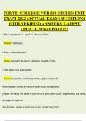 This document contains a comprehensive collection of actual HESI RN Exit Exam questions for the NUR 210 course at Fortis College, carefully compiled for the 2025 exam cycle. It includes fully verified answers with clear rationales, covering key nursing concepts such as medical-surgical nursing, pharmacology, fundamentals, leadership, and critical thinking.