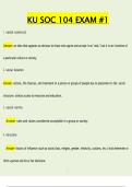This document is a comprehensive and fully defined study guide for SOC 104 Exam #1 at KU, presenting clear, exam-ready definitions and explanations of foundational sociological concepts. It covers core topics such as social constructs, social norms, social location, structure versus agency, class stratification, and socialization processes, providing students with precise language and understanding expected on introductory sociology exams.
