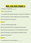 This comprehensive study guide for BIO 156 Exam 1 at Rio Salado College provides a detailed review of all key topics covered in the course, offering students a structured and effective way to prepare. The material covers foundational biology concepts such as the scientific method, cell structure and function, macromolecules, basic chemistry of life, enzyme activity, cellular respiration, photosynthesis, and an introduction to genetics. Each topic is presented with clear explanations, practical e...