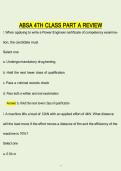 This document is an extensive exam-preparation and review manual for the ABSA 4th Class Power Engineer Part A certification, structured as a large bank of multiple-choice questions with confirmed correct answers. It covers the full theoretical foundation required for entry-level power engineers, including applied mathematics, physics, thermodynamics, mechanics, electricity, instrumentation, and basic chemistry as they relate to plant operations. The material places strong emphasis on boilers and...