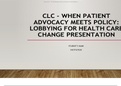 Presentation NUR 514 Topic 5 Assignment; CLC - When Patient Advocacy Meets Policy; Lobbying for Health Care Change Presentation, Latest 2019/2020 Complete Guide, A Graded.