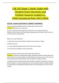 This document provides a detailed study guide for CSE 205 Exam 2, featuring updated exam questions along with verified correct answers. It covers the intermediate programming topics, algorithmic concepts, and data-handling techniques typically assessed in the second exam of the course. The material is organized to offer a clear, accurate, and comprehensive review to support strong preparation for the 2025/2026 academic year.This document provides a detailed study guide for CSE 205 Exam 2, featur...