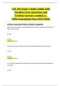 This document provides a detailed study guide for CSE 205 Exam 3, featuring revised exam questions paired with verified correct answers. It covers the advanced programming concepts, object-oriented techniques, and algorithmic problem-solving skills typically evaluated in the third exam of the course. The material is structured to deliver a clear and complete review to support strong preparation for the 2025/2026 academic year.This document provides a detailed study guide for CSE 205 Exam 3, feat...