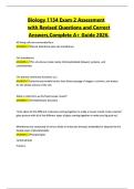 Biology 1134 Exam 2 Assessment with Revised Questions and Correct Answers,Complete A+ Guide 2026.