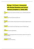 Biology 1134 Exam 3 Assessment with Revised Questions and Correct Answers,Complete A+ Guide 2026.