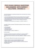 - PSYC EXAM 2 MODULE QUESTIONS AND ANSWERS WITH CORRECT SOLUTIONS GRADED A+ • Exam (elaborations)