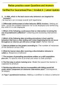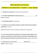 Relias 2024 Questions and Answers Verified For Guaranteed Pass | Graded A | Latest Update Relias 2024 Questions and Answers Verified For Guaranteed Pass | Graded A | Latest Update Relias 2024 Questions and Answers Verified For Guaranteed Pass | Graded A | Latest Update Relias Questions and Answers Verified For Guaranteed Pass | Graded A | Latest Update 1. 1. Identify two consequences:: reinforcement and punishment 2. 2. The field of Applied Behavior Analysis focuses on be- havior.: ob...