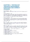 CHAPTER 1 - THE ROLE OF TREASURY MANAGEMENT QUESTIONS AND CORRECT ANSWERS