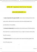 LOMA 281 Exam Questions with Correct Answers waiver of premium for payor benefit - Answer-insurer waives renewal premiums if the policy owner, rather than the insured, dies or becomes totally disabled (must provide evidence of insurability) Contracts of Indemnity - Answer-base benefits on the actual amount of the financial loss that results from a covered event when it occurs, subject to maximum limits (other than life insurance) Valued Contract - Answer-life insurance policies which state the b...