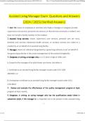 Assisted Living Manager Exam 2024 Expected Questions and Answers (2024 / 2025) (Verified Answers)