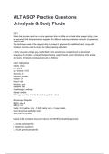 MLT ASCP Practice Questions: Urinalysis & Body Fluids NEWEST 2025/2026 ACTUAL EXAM COMPLETE QUESTIONS AND CORRECT DETAILED ANSWERS (VERIFIED ANSWERS) |ALREADY GRADED A+||BRAND NEW!!