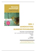 Een duidelijke samenvatting van het boek Klinische psychologie - theorieën en psychopathologie hoofdstuk 1 t/m 10 (deeltentamen 1)