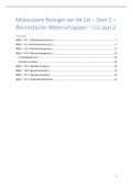 Dit document bevat een volledige samenvatting van alle hoorcolleges gegeven van deel 1 van het vak 'Molecular Biology of the Cell' gegeven in blok 2 van bachelor jaar 2 aan de Universiteit Utrecht van de opleiding Biomedische Wetenschappen. Het bevat veel handige tabellen, afbeeldingen, figuren en opsommingen. Het bevat alle tentamenstof voor het eerste deeltentamen